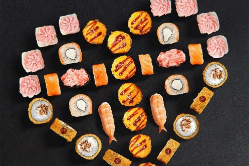 Ролл запеченный с чукой, ролл Филадельфия Баланс, ролл Римский, ролл с тунцом и сыром, ролл Чикаго, 40 шт *Данный сет в акциях и скидках не участвует. Итоговый внешний вид может отличаться от фотографий на сайте.