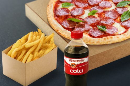 Пицца с салями 32 см, картофель фри, кола 0,5л . *Данный Комбо набор в акциях и скидках не участвует. Итоговый внешний вид может отличаться от фотографий на сайте.