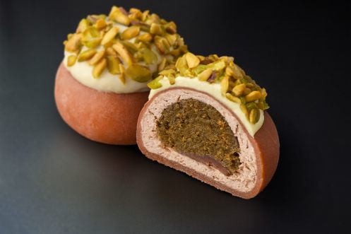 Вкус моти по мотивам популярного дубайского шоколада! Хрустящий центр из теста катаифи с фисташковой пастой в корпусе из молочного шоколада в творожном креме.1ШТ.