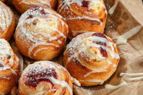 тесто, сыр креметте, вишня, сгущенка, сахарная пудра итоговый внешний вид может отличаться от фотографий на сайте